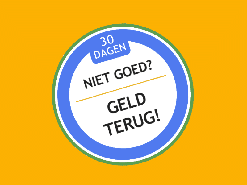 Bent u niet tevreden, dan betalen wij u binnen 30 dagen na aankoopdatum het volledige aankoopbedrag terug!